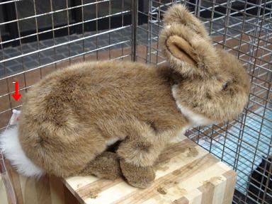ここでマネうさちゃんのおしりの部分(赤い矢印のところです)に何かを発見!