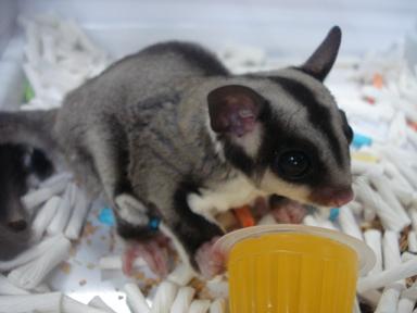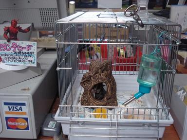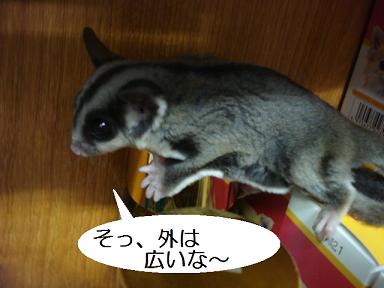 こんばんはー いずみんです 本日は以前ご紹介しましたモモちゃんの登場です! じゃーん! 気温もだいぶ暖かくなってきたので、今日から小さめのケージにお引越しいたしました! オス・メスのペアーで居たのですが、少し前に男の子の方は飼い主様のもとへ・・・ 今は女のコひとりです! 不安そうにこちらをうかがっているので 大好きなゼリーをあげてみましょう! すぐに出てきました(笑) だいぶ大きくなったのですよー 時々ケージの外に出してあげています まだ動きは恐る恐るですけれどもね そして・・・ こんな感じで飛んじゃったりもしま~す!! 画像上手く撮れませんでした。すみません と、いつかは脱走をしようと思っているかどうかは分かりませんが、だいぶ立派になったモモちゃんでした! ではまたー ←ブログランキングに参加しております!よろしかったらクリックをお願い致します。