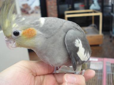 こんばんは いずみんです 今日は一日中雨でしたね~ こんな日は暖かいお部屋でのんびりとインコと遊ぶのがオススメです! というわけで・・・ 今日はこのコの登場です! じゃ~ん!オカメインコちゃんです ノーマルカラーの1月中旬生まれ! お店に来てからほとんど手の掛かることなく 立派になってきました