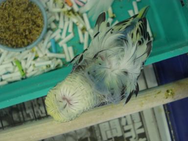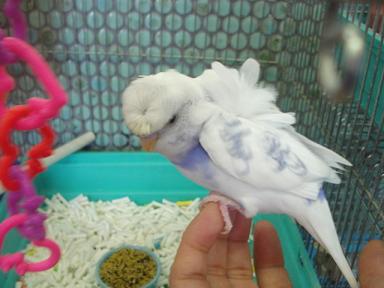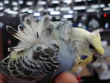 こんばんはー いずみんです 本日は以前ご紹介いたしました・・・ 背中バクハツ寝グセ頭のインコちゃん 羽衣セキセイインコがだいぶ立派になってきましたので現況をお知らせしちゃいます じゃじゃ~ん ヒナ餌も卒業して、だいぶシッカリしてきましたよ! 入舎当時(一枚目画像)と比べるとクチバシの色が違いますよね。ヒナの頃はまだクチバシが茶色でしたが、いつの間にか色が抜けちゃうんですよね 上から見た画像です。 爆発状態の背中も健在です! 飼いやすい手のりになりました もう一羽のコも、これまた美しいカラー、美しい寝癖アタマ、美しい背中の爆発加減・・・と三拍子揃っております! 「わたし、ただの手のりインコには興味ありません!」 なんて方にはオススメです。是非見にいらしてくださいねー。 ではまたー ←ブログランキングに参加いたしております!よろしければクリックをお願い致します。