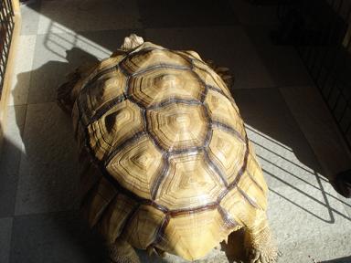 陽射しを浴びている自慢の甲羅はポカポカです