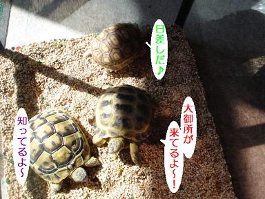 小リクガメ集団もケースごと、久しぶりの日光浴です