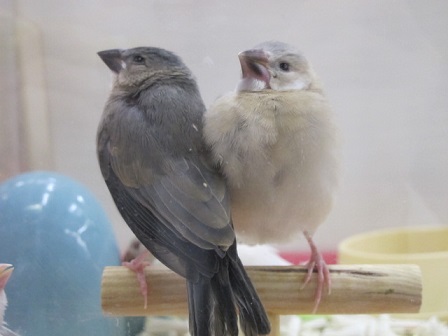 スタッフ二鳥が頑張って馴らしてくれた 羽衣セキセイインコちゃん 12月上旬生まれ です。 女の子っぽいかなぁ… いかがでしょうか? ご来店お待ちいたしております(^ω^) では |