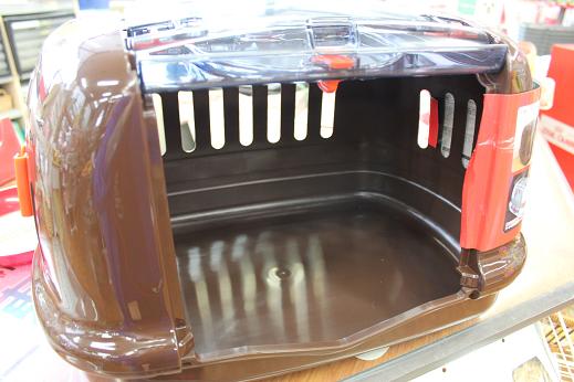 そんな中での本日2回目の更新は おもしろいキャリーのご紹介です。 お客様からのリクエスト品だったのですが、店頭販売用も仕入れました。 どこがおもしろいかと言いますと 扉が3箇所! 1! 2!! 3!!! しかもこの状態で・・・ 2の扉部分が天井にビルトイン!! 二和店店長の愛車にも負けないこの機能! ※内輪ネタでごめんなさい こうして 簡易的なハウスにもなるんです! ちなみに 中の広さはちょうどレギュラーサイズのシーツが敷ける位です。 こちらのキャリー 『犬猫用』となっておりますが わんちゃんよりも『猫』・『うさぎ』に向いていると思いますよ~ よろしかったらどうぞ! 今回ご紹介のキャリーはありませんが、オンラインショップもやっております! (おし・ω・らせ)