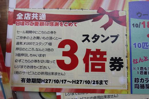 本日はセールのお知らせです!! 来月の話しですが・・・ 10月17日(土)から25日(日)まで 柏店20周年記念 「メガセール」をおこないます!! 只今、チラシを配布中! 特売品は人気商品を中心としたラインアップとなっていますよ さらに見逃せないのが このチラシに、セール期間中に使える 「スタンプ3倍券」が付いているんです!!これはオトクですよ~ 配布されるチラシには限りがありますので お早めにもらいに来てね~ ではまた (おし・ω・らせ) ☆☆☆☆メルマガのご案内☆☆☆☆ 当店だけのメールマガジン始めました!(^^) 詳しくはこちらをクリック→★★ |