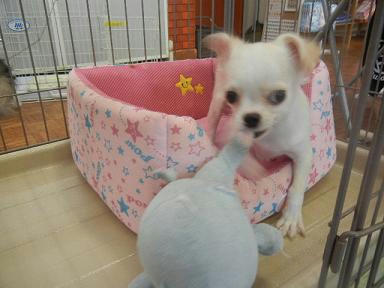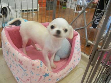 先週当店にやって来ました の中に居た このコ ロングコートチワワの男の子(2月15日生まれ) 当店は入舎後すぐ店頭に出さず、数日様子を見るのですが 食欲も旺盛で、性格も気難しかくなさそうなので… 犬舎デビューとなりました 体型もしっかりとしていて、育て易そうなコですよ~ 気になる方は是非見に来てくださーい では |