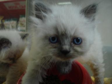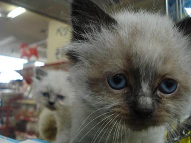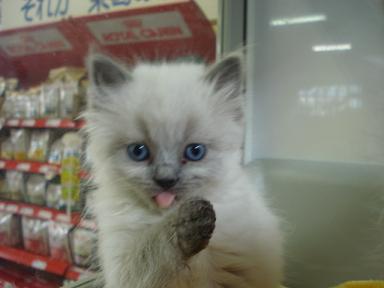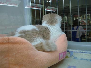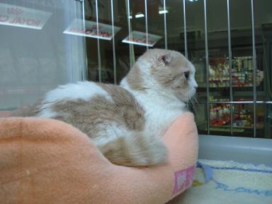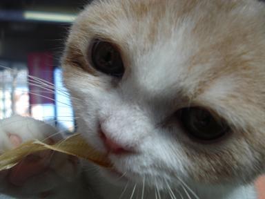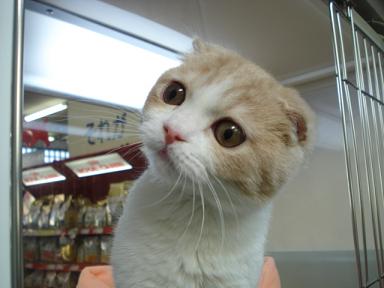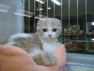 「お~い!こっち向けー!!」 残念、横顔どまりか・・・。 「こっちだってばー!」 やっとこちらを向いてくれました(笑) どうです?可愛いでしょ♪ 当店秘蔵っ子のスコティッシュフォールド カラーはカメオ&ホワイトの男の子です ぜひ見にいらしてくださいねー ではまたー ←かわいいよと感じてくれた方はクリックをお願いします