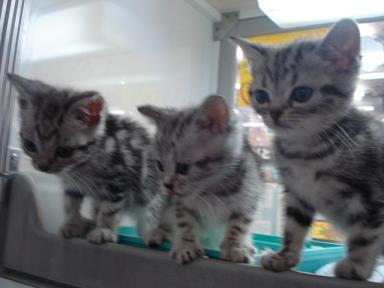 こんばんはー いずみんです! 早速ですが、 今日久しぶりに入舎したニャン子達をご紹介! じゃ~ん! この子達です! アメリカンショートヘア (9月3日生まれ) 男の子一人、女の子二人です。 そして! ロシアンブルー姉妹(9月4日生まれ)も入舎しました! ゴハンもよく食べていますよー 是非見にいらしてくださいね ではまたー ←よろしかったらクリックをお願い致します。