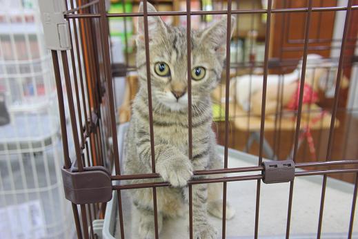 店内キャットケージでの人気者だった アメリカン・ショートヘアの「アメちゃん」 本日めでたくお家が決まりました お迎えされるお家には先輩ニャンコが居るそうです アメちゃん、先輩の言うことはちゃんと聞くんだぞ~(笑) アメちゃんの抜けた キャットケージには新しく ミッ クス ニャンコが入りました 5月5日生まれの女の子です! 皆さん遊びに来て下さいね~ ではまた (おし・ω・らせ) ☆☆☆☆メルマガのご案内☆☆☆☆ 当店だけのメールマガジン始めました!(^^) 詳しくはこちらをクリック→★★ |